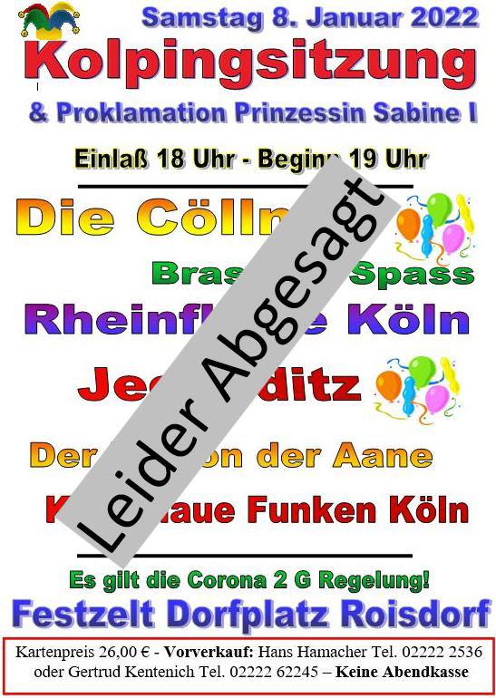 Am 08. Januar 2022 sollte ich im Rahmen der traditionellen Prunksitzung der Kolpingfamilie Roisdorf proklamiert werden.
