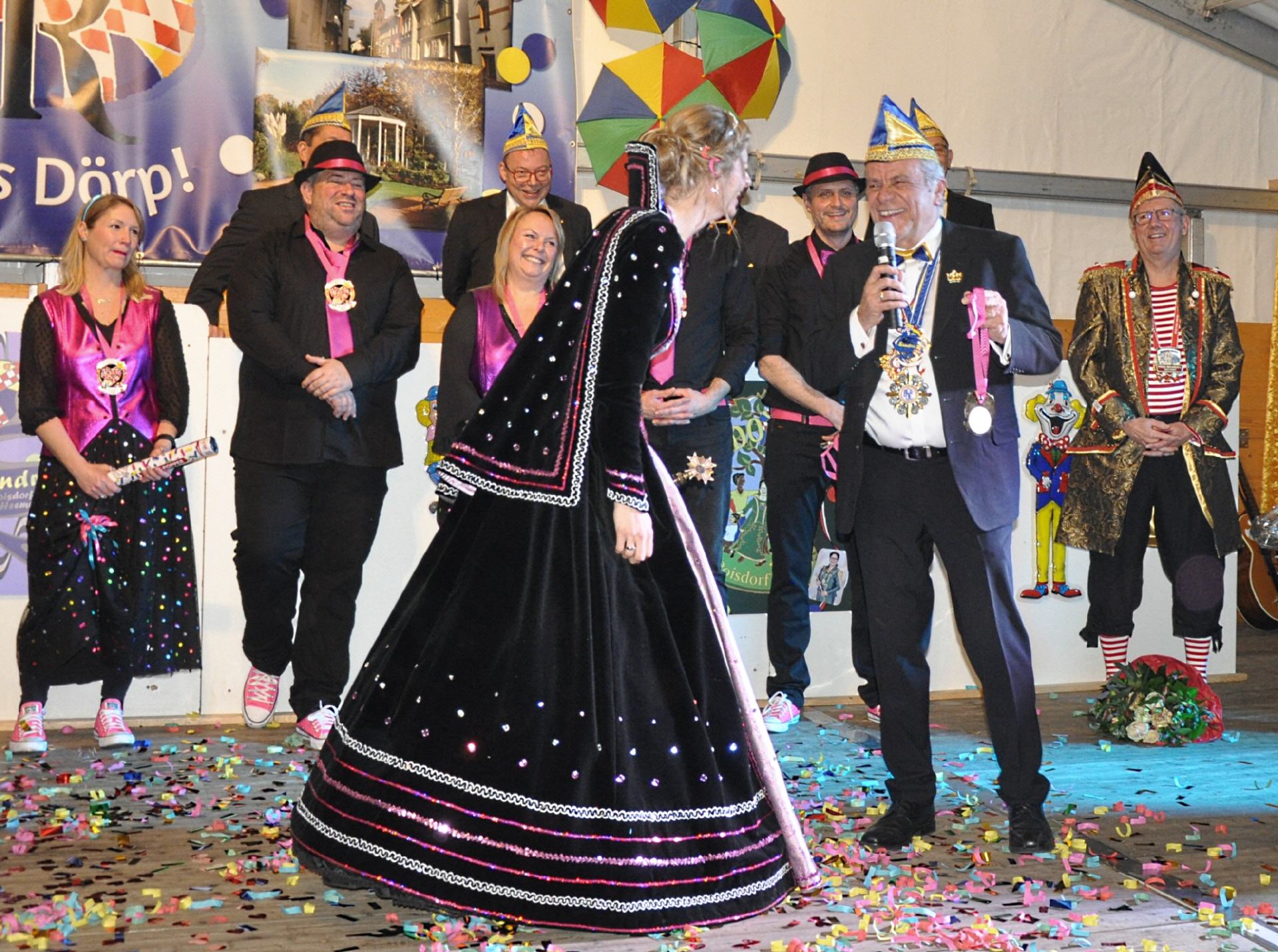 Ich möchte mich von ganzem Herzen bei allen Beteiligten bedanken! Diese Unterstützung, bei meinem Wunsch proklamiert zu werden, die ich von den Roisdorfern erfahren habe, war sehr beeindruckend! In wenigen Tagen haben wir diese Form der Proklamation organisiert. Der Elferrat, die Kolpingfamilie, der Ortsausschuss, der Senat Förderkreis und mein Gefolge haben diesen Abend so kurzfristig möglich gemacht. Natürlich waren die Möglichkeiten eingeschränkt: keine Gäste, keine Auftritte, keine Party. Der Abend hat meine Vorstellungen weit übertroffen! Vielen Dank an alle, die da waren, für die gute Stimmung! Mein besonderer Dank gilt Adi, der seine weihnachtlichen Termine dafür verschoben hat und sogar, trotz gegenteiliger Ankündigung, ein Lied für mich vorbereitet hatte. Außerdem danke ich natürlich Wolfgang für sein unermüdliches Engagement. Von Herzen gefreut hat mich, dass der Elferrat sogar Konfetti-Kanonen vorbereitet hatte!